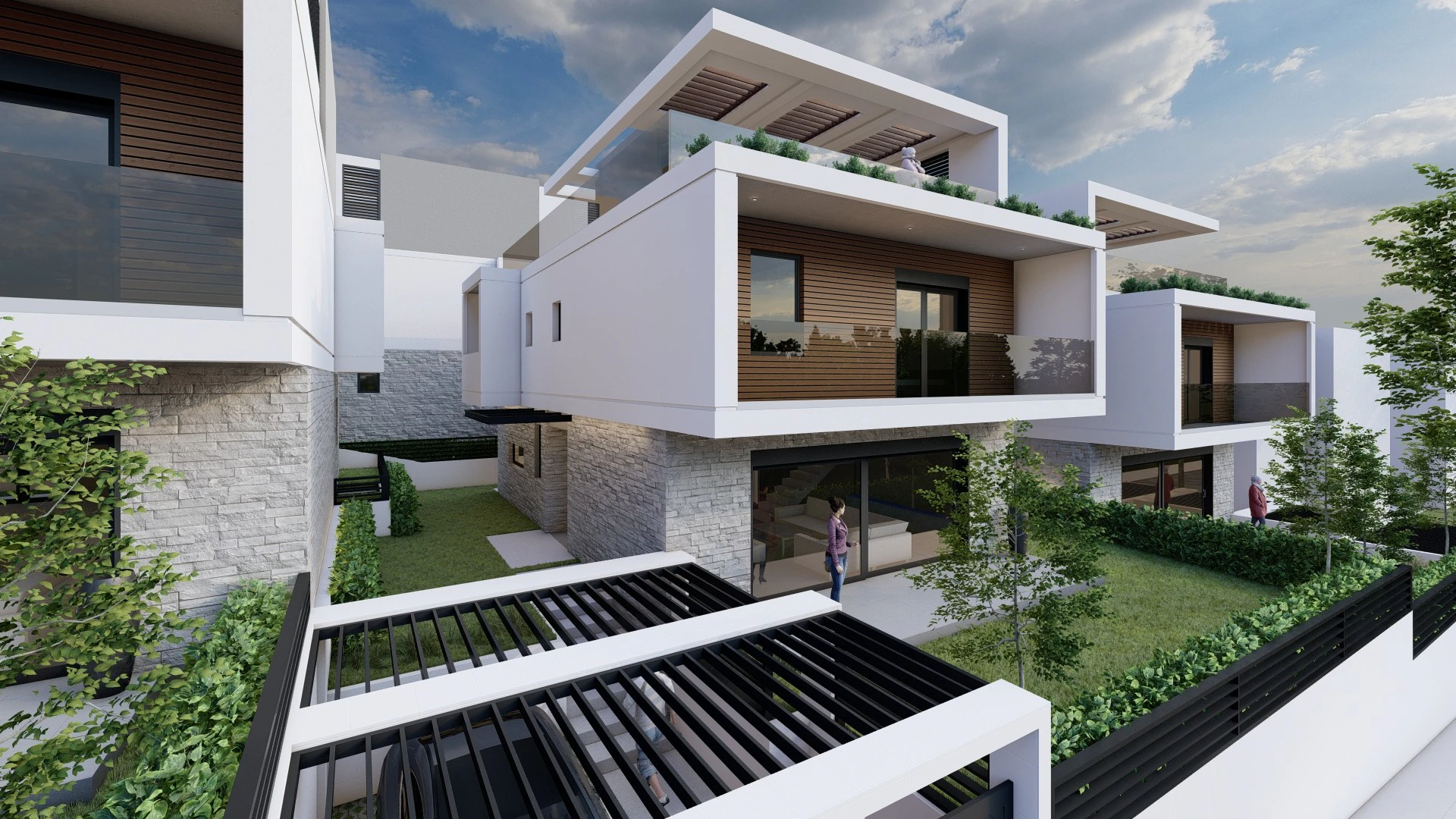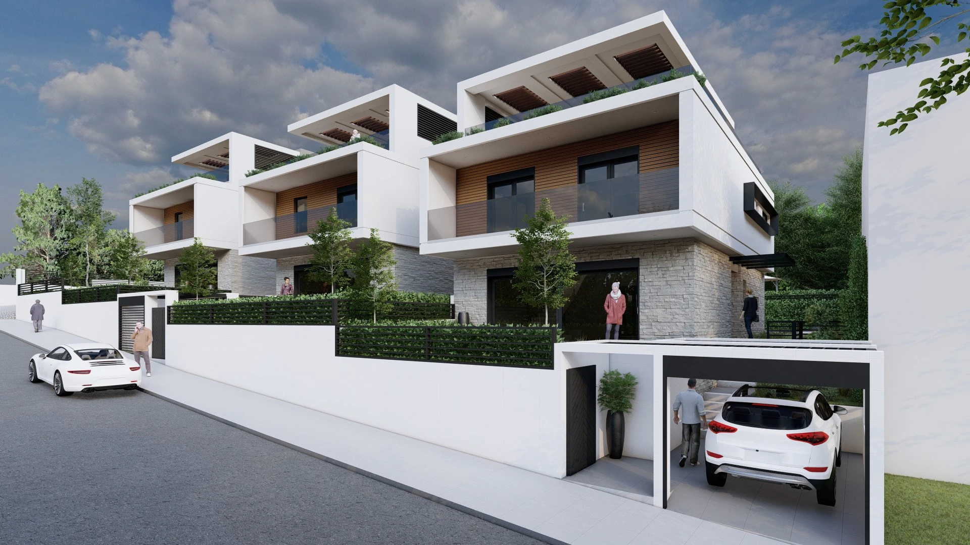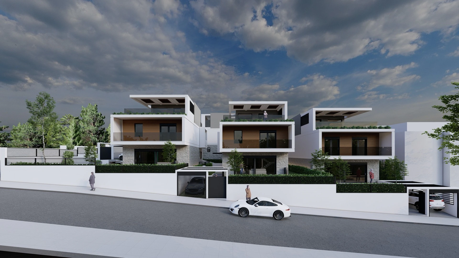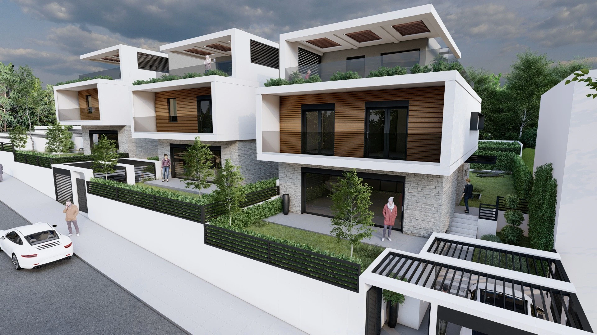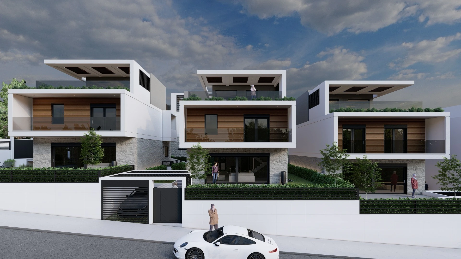 Construction of five luxurious single-family homes with sea view, private parking, roof garden and pools. Located in the Liogermа Thermi area.