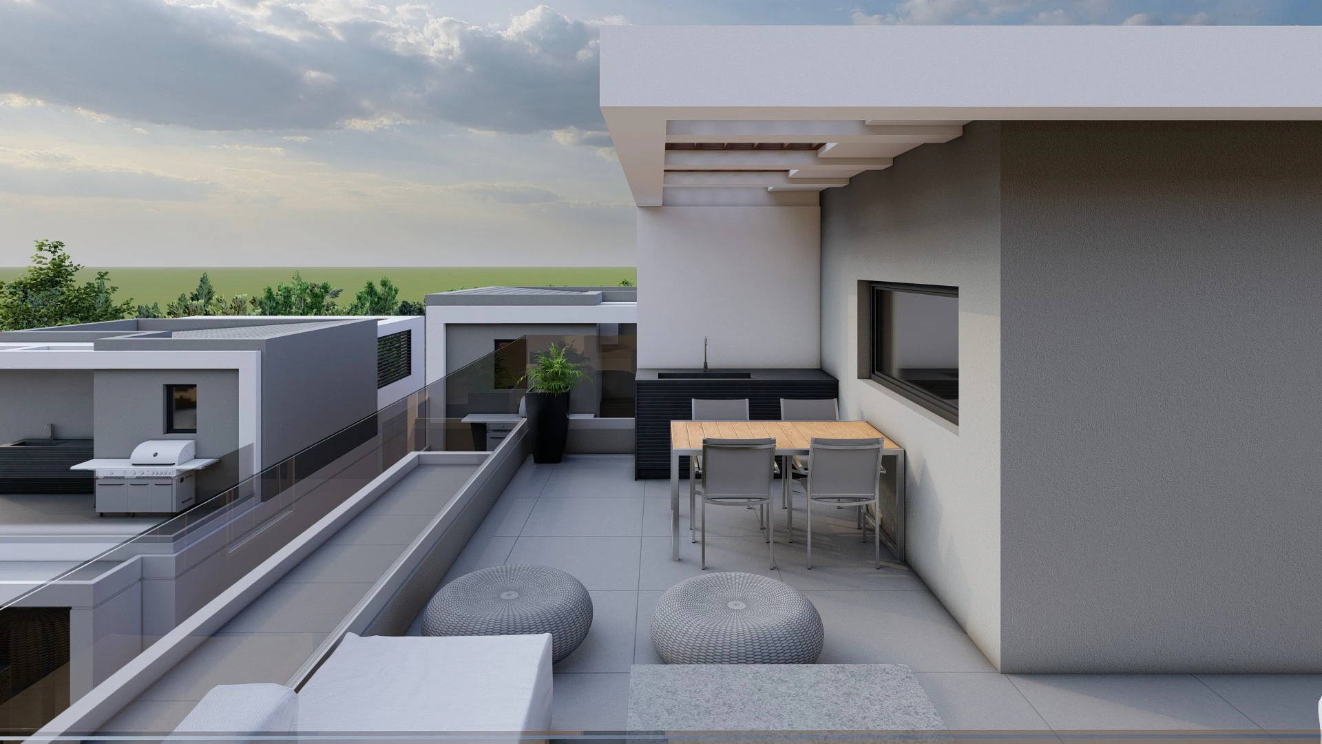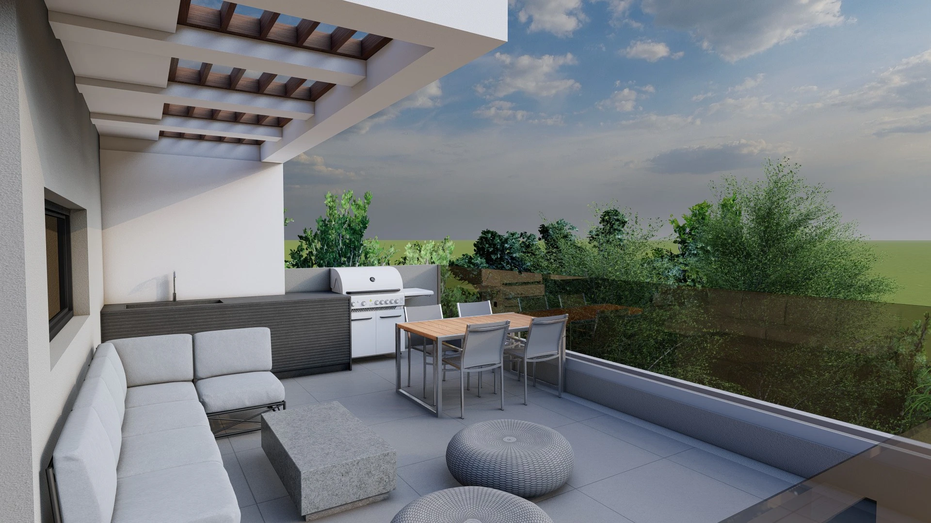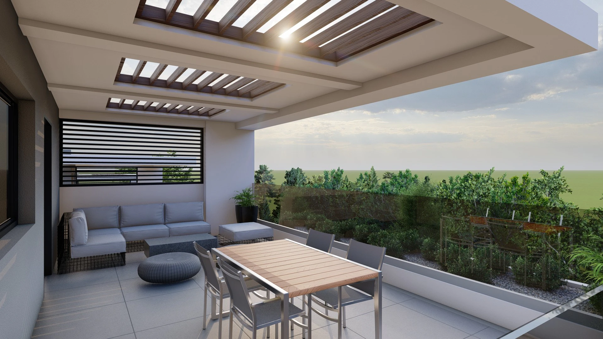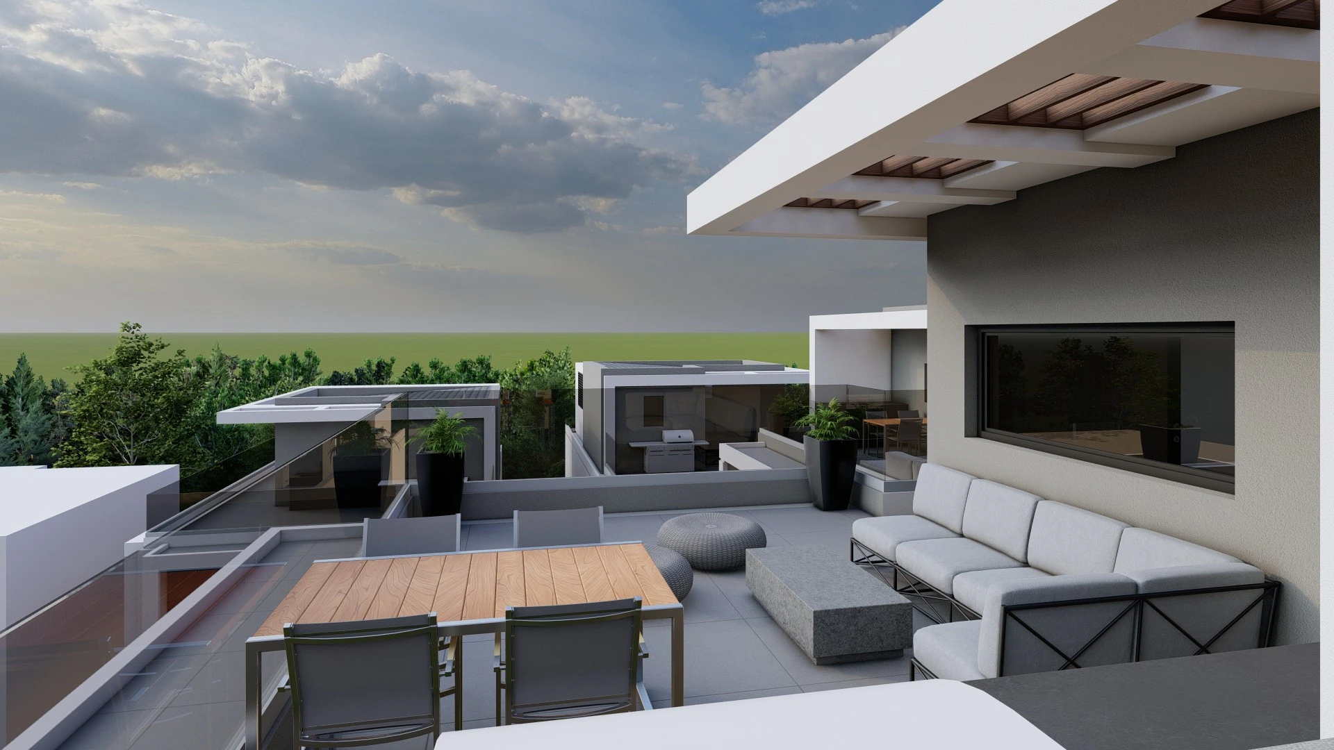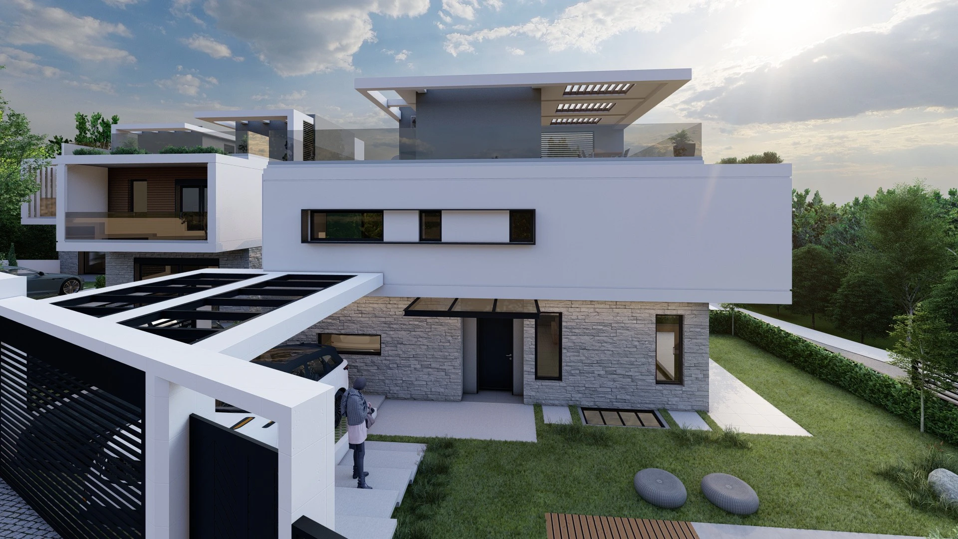 Construction of five luxurious single-family homes with sea view, private parking, roof garden and pools. Located in the Liogermа Thermi area.
